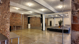 Dank der flexiblen Gestaltungsmöglichkeiten kann der Raum durch Theatervorhänge mehrfach unterteilt werden, um verschiedene Aktivitäten oder Veranstaltungen durchzuführen. Eine Wand ist mit einem 8 m² großen Spiegel ausgestattet, der besonders für Tanz- und Fitnessaktivitäten genutzt wird. Zusätzlich stehen Pole-Dance-Stangen zur Verfügung, die für entsprechende Kurse und Events genutzt werden können.